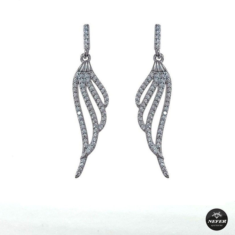 Pendiente plata de ley 925 de circonitas, de 3.7 cm de largo y cierre presión .
