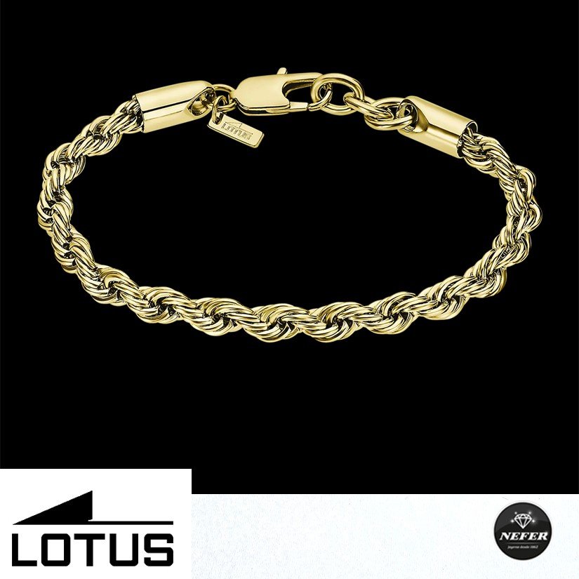 Pulsera Lotus acero, cordón rizado salomónico, chapada en oro.