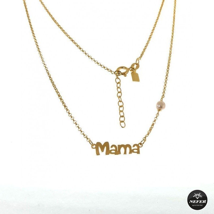 Gargantilla en plata de ley 925 de cadena de rolo con motivo mamá y perla, chapada en oro.