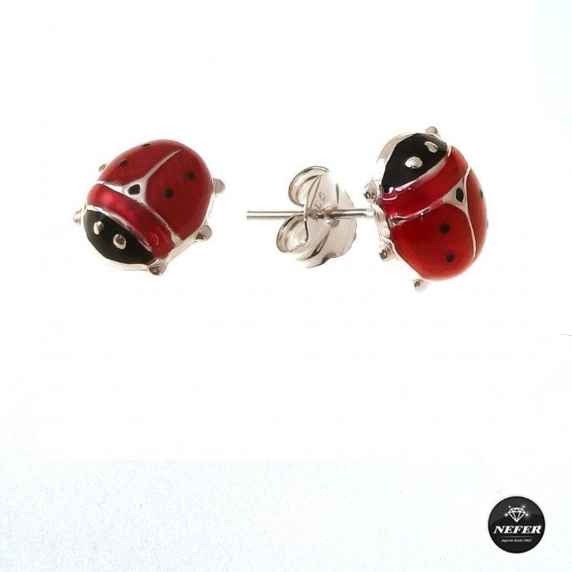 Pendiente plata de ley 925 mariquita esmaltada