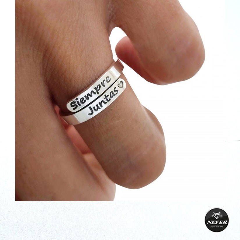 Sortija cruzada plata de ley 925 ( 3mm ancho ) con mensaje siempre juntas .